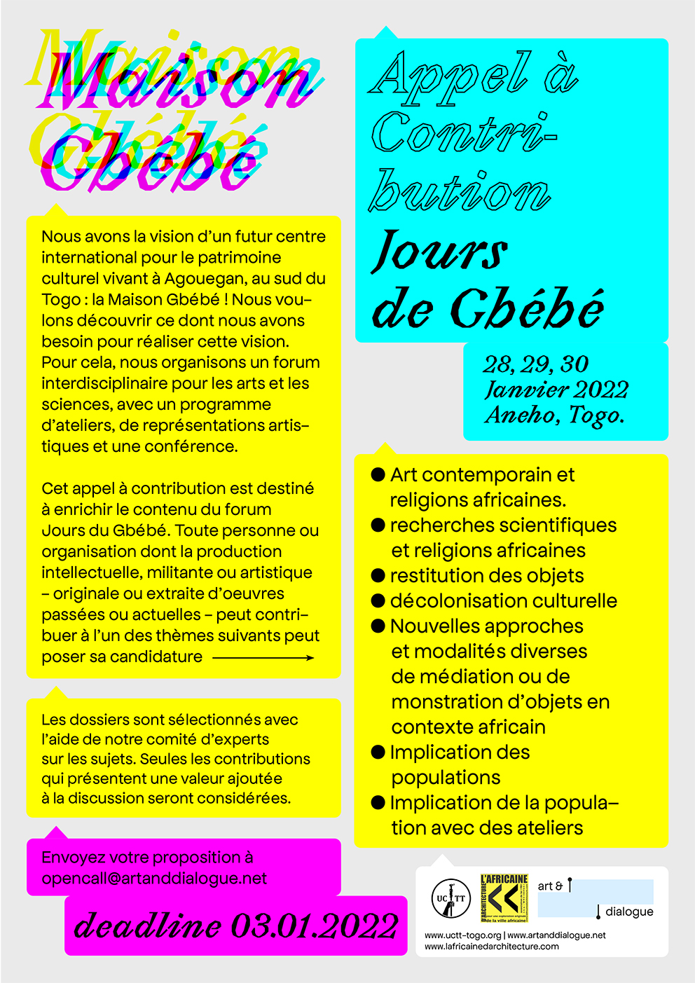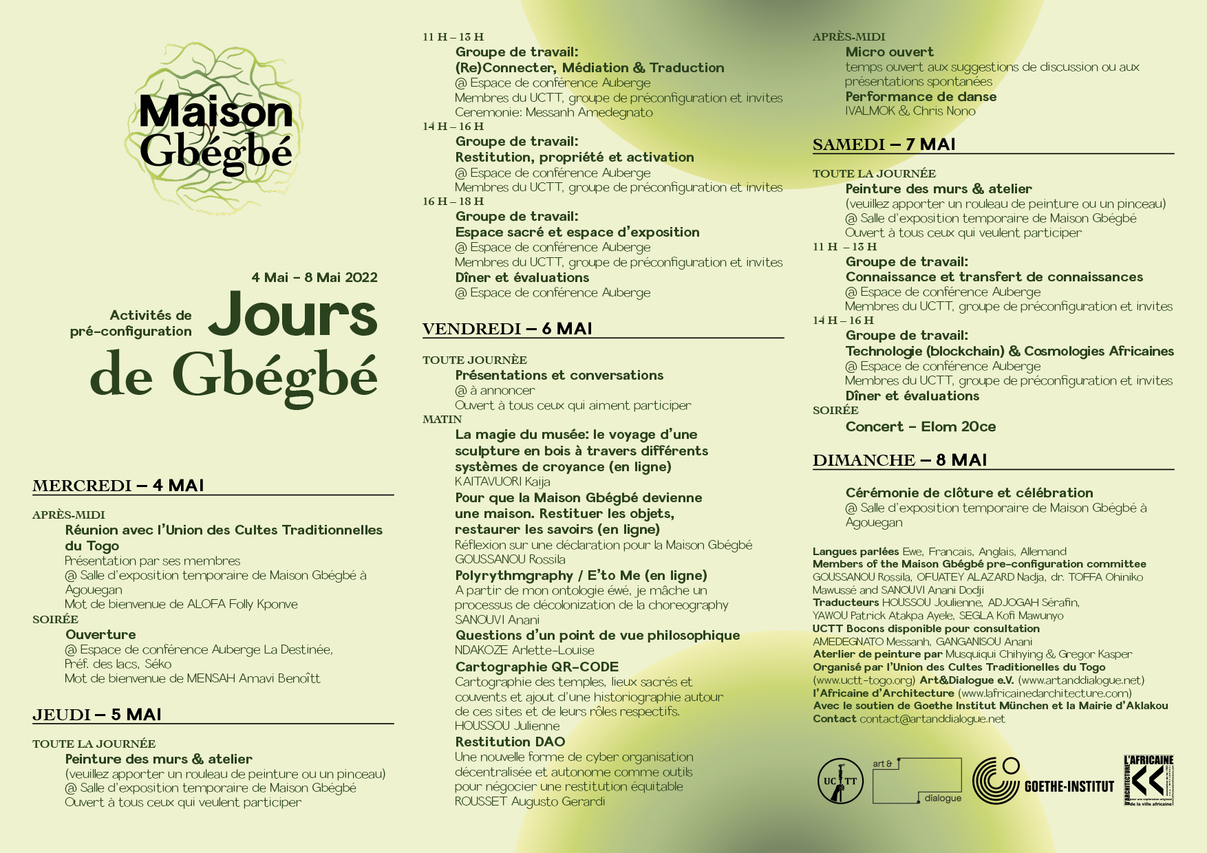 The Restitution DAO project by Augusto Gerardi Rousset was part of the Prefiguration Activities for the Center of Traditional Cultural Heritage, Maison Gbégbé - Togo. Organised by l’Africaine d’architecture, l’Union des Cultes Traditionnels du Togo (UCTT), and art&dialogue e.V. Berlin.